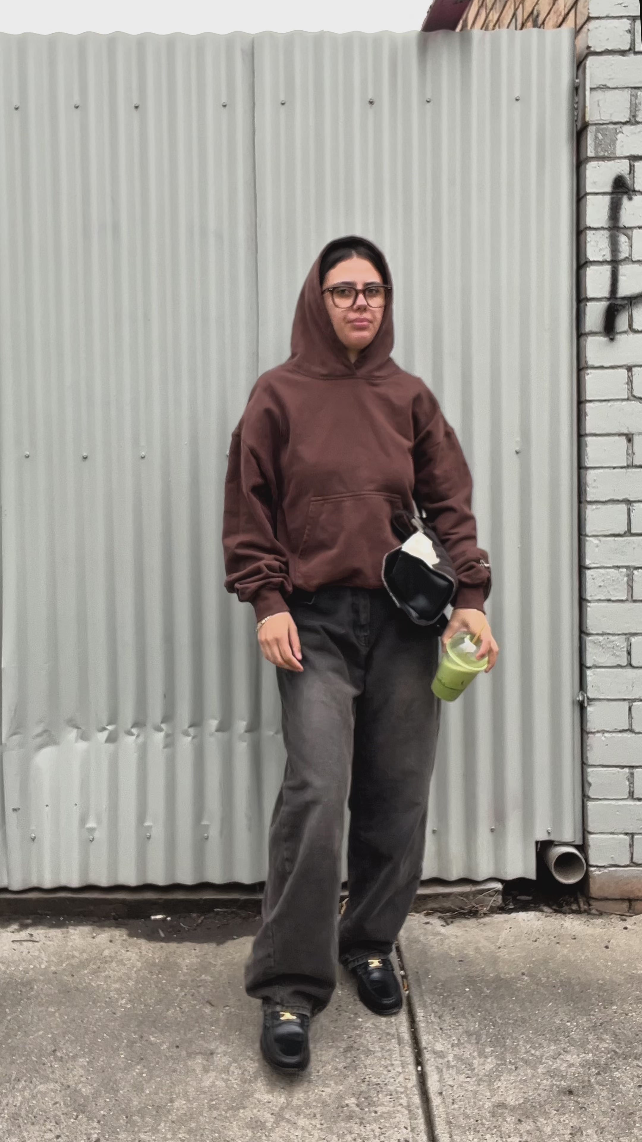 Prior Embroidery Logo Oversized Cropped Hoodie Cocoa