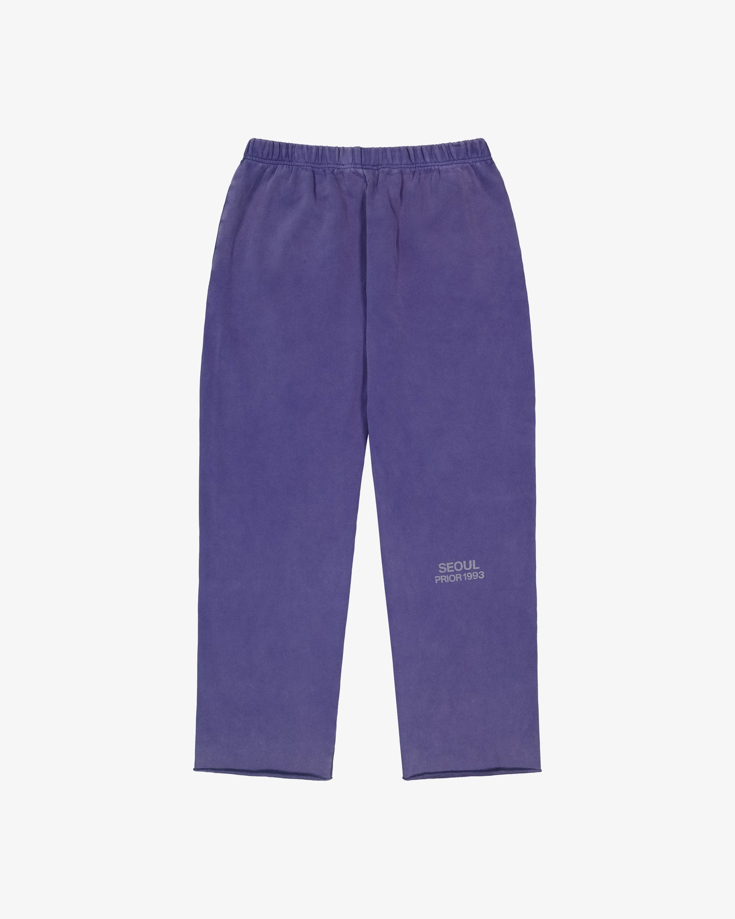 A relaxed silhouette designed for comfort and versatility. Made from the same 440GSM cotton, these pants are washed for a worn-in vintage feel. Featuring a raw hem that can be cut to your preferred length, a drawstring waist for everyday comfort, and a subtle distressed “Seoul Prior 1993” logo detail.
