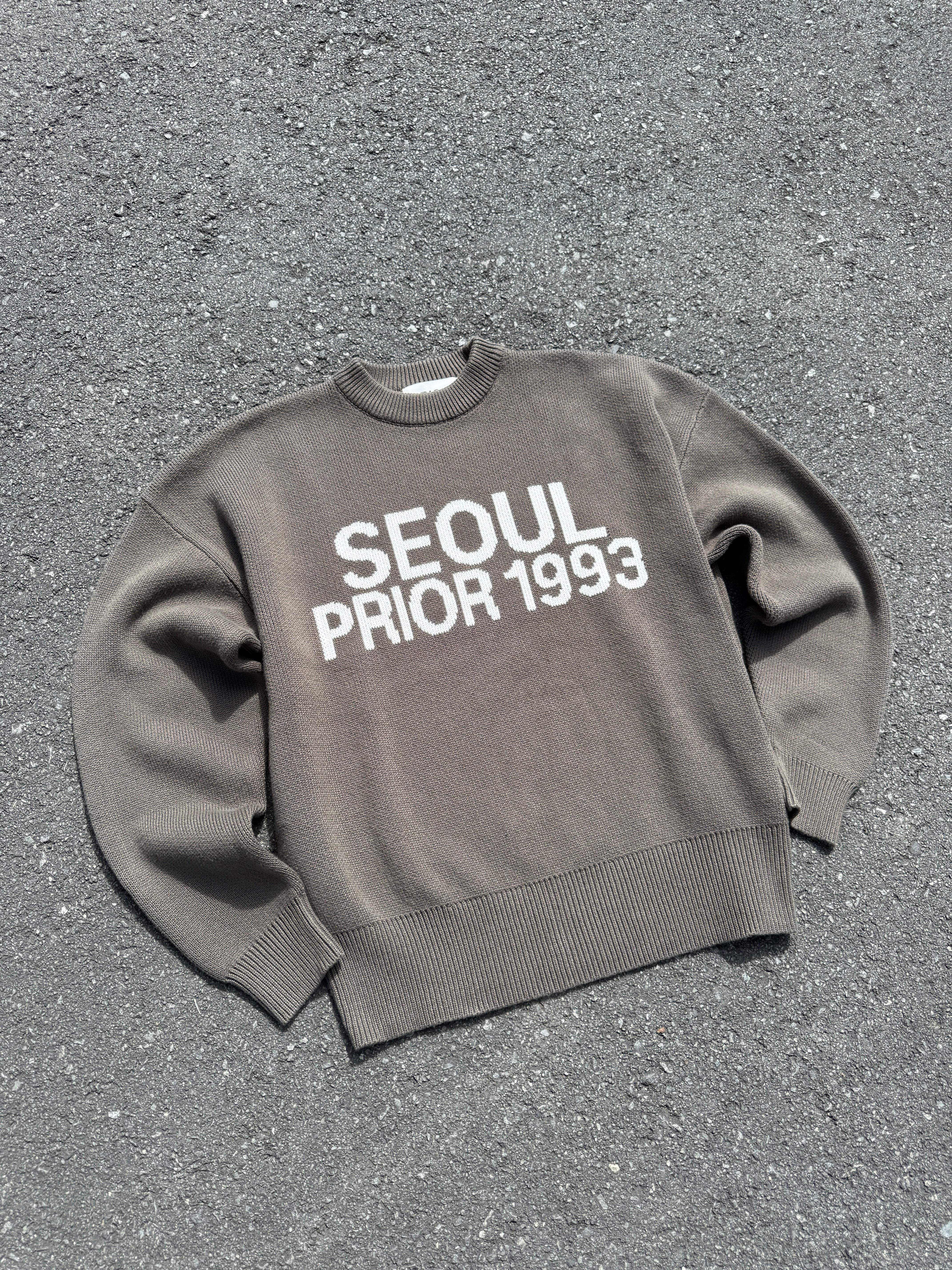 A considered approach to seasonal layering. Crafted from 100% organic cotton, this sweater offers a structured yet soft hand feel, balanced with a signature thick waistband designed to sit cropped or relaxed. The intarsia “Seoul 1993” chest detail references the collection’s origin and narrative-our ode to home.